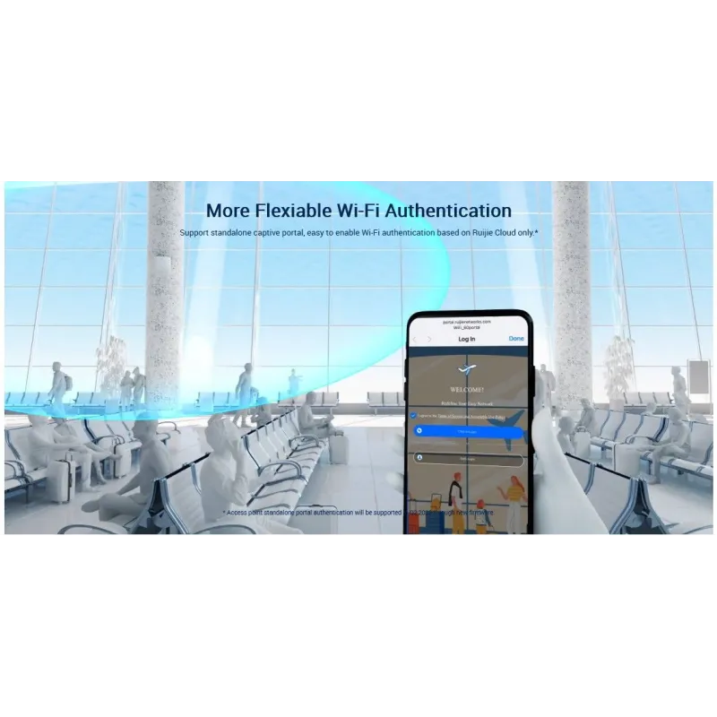 Standalone captive portal, easy to enable Wi-Fi authentication based on Ruijie Cloud only.*