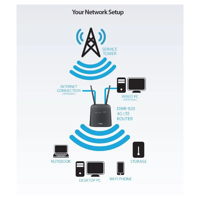 The 4G DWR-920 router allows you to easily switch to a backup network if your primary connection presents a problem as it offers not only the possibility of connecting a 4G mobile network but also a fixed broadband link through its LAN / WAN that can be easily configured.