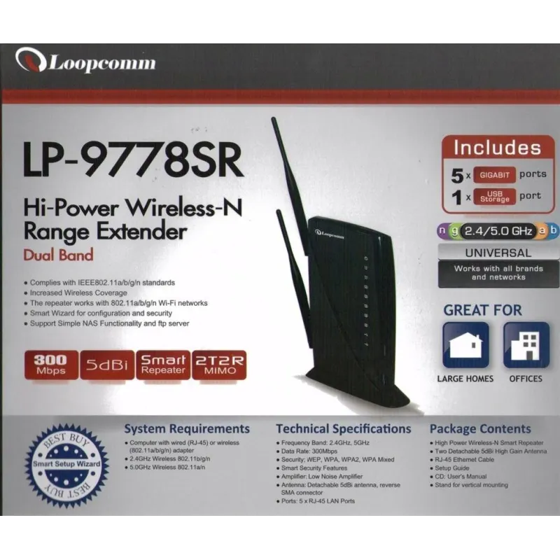 LoopComm LP-9778SR Wireless Broadband Router Dual Band 2 ย่านความถี่ 2.4/5Ghz ความเร็ว 300Mbps กำลังส่ง 600mW รองรับ Mode Repeater, 3G USB Modem อุปกรณ์คุณภาพสูงราคาประหยัด