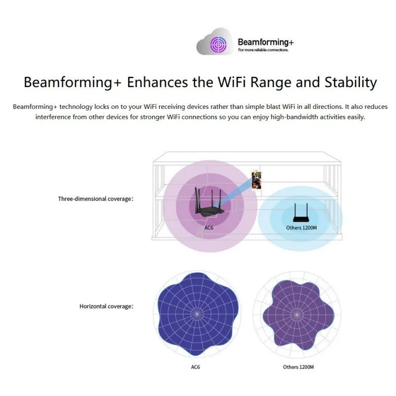 Overview | TENDA AC6 Wireless AC Router ความถี่ Dual-Band 2.4/5GHz มาตรฐาน AC ความเร็วสูงสุด 867Mbps, 3 Port Lan, 1 Port Internet พร้อม เสา ขนาด 5dBi x 4 ต้น รองรับ Mode Universal Repeater |