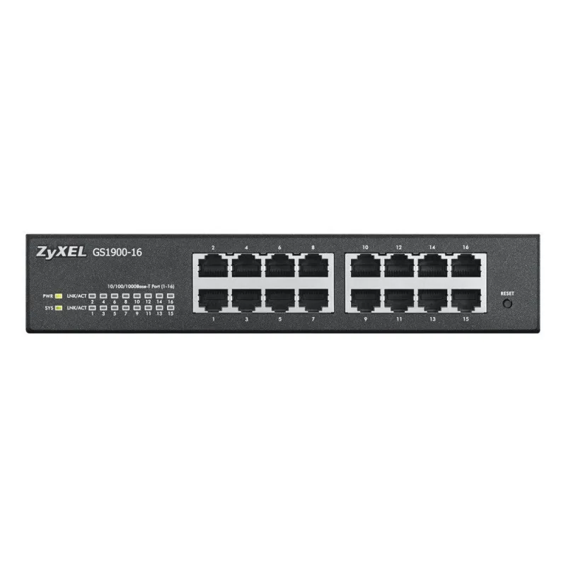 Zyxel GS1900-16 L2 Smart Managed Switch 16 Port ความเร็ว Gigabit แบบ desktop พร้อมชุดยึดตู้ Rack จัดการผ่าน Web Browser รองรับ 802.1Q VLAN