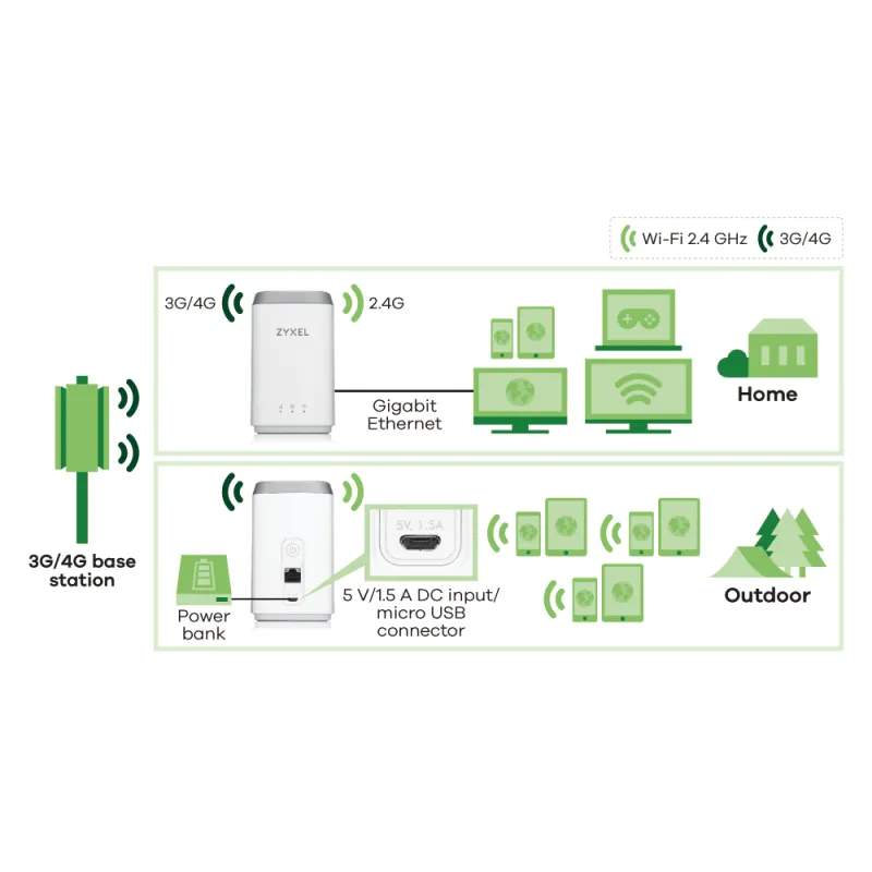 Zyxel LTE4506 LTE-A 4G HomeSpot Router ให้คุณเชื่อมต่ออินเตอร์เน็ตผ่านเครือข่ายบรอดแบนด์ไร้สายด้วยเทคโนโลยี Carrier Aggregation อันทันสมัยโดยรองรับ LTE, DC-HSPA+/HSPA/UMTS and EDGE/GPRS/GSM คุณสามารถท่องอินเตอร์เน็ตได้อย่างไร้ข้อจำกัดจากที่บ้าน และสถานที่ต่างๆ ที่สัญญาณ LTE/3G เข้าถึง
