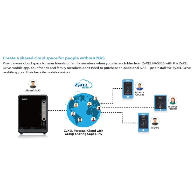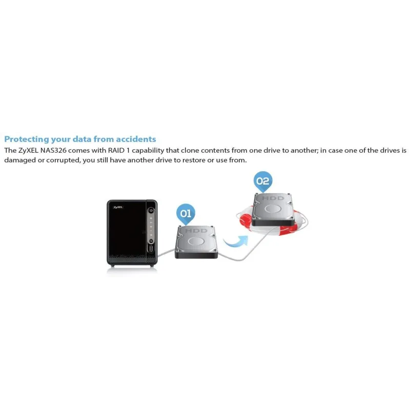 Zyxel NAS326 อุปกรณ์จัดเก็บข้อมูล NAS 2 Bay รองรับ HDD SATA II ความจุ 6TB x 2 ทำ File Sharing/ Media Server/ Bittorrent
