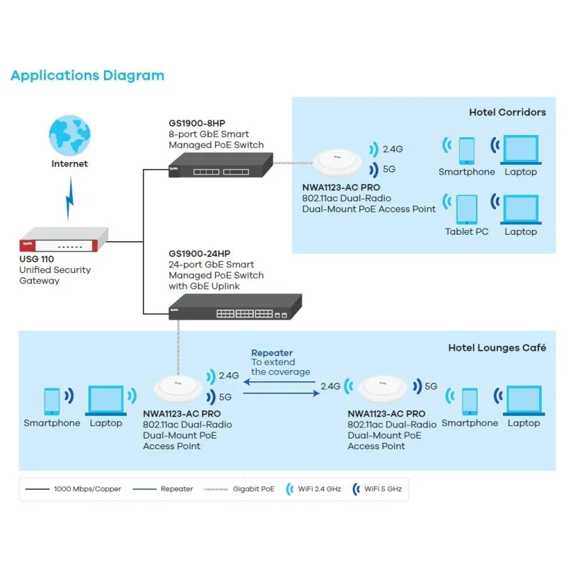 Overview | Zyxel NWA1123-AC PRO Wireless Access Point Dual-Band 2.4/5GHz มาตรฐาน 802.11ac ความเร็วสูงสุด 1750Mbps 3T3R MIMO, 2 Port Lan Gigabit, Standalone/Nebula Cloud |