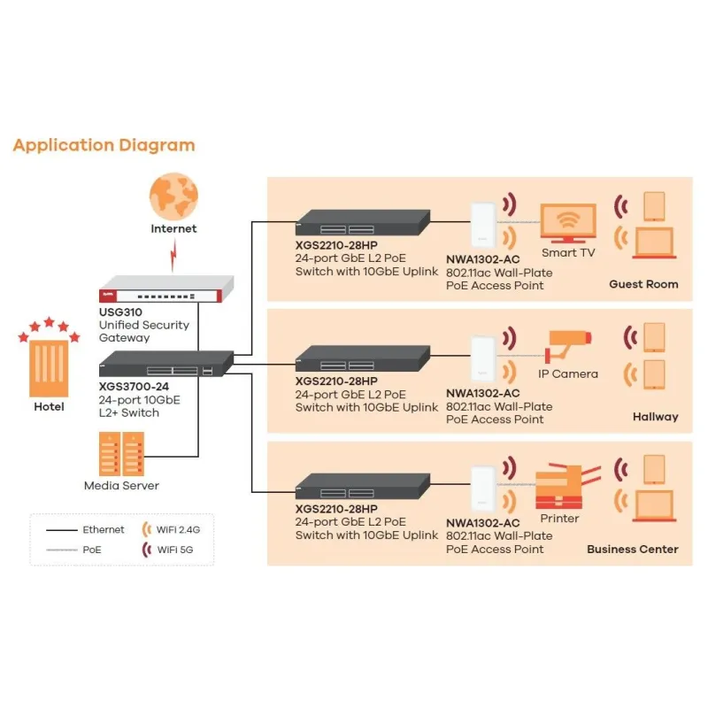Overview | Zyxel NWA1302-AC Wall-Plate Access Point AC1166 2x2 SU-MIMO, 4 Port Lan Gigabit, 1 Port USB รองรับการ Config แบบ Standalone ลแะ Nebula Cloud รองรับ PoE, เหมาะสำหรับติดตั้งในห้องพัก โรงแรม |